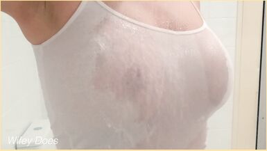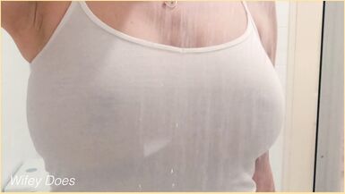 . Wifey has amazing tits for wet shirt braless. Hot MILF is braless and getting her perfect tits wet in the shower. Her amazing tits show braless for perfect enjoyment. Hot WIFE with braless wet shirt tits.
