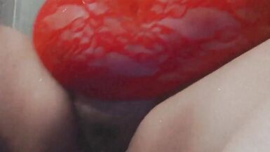 IN LACE RED DRESS PLAYING WITH MY PUSSY