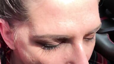 WE SNUCK OFF FROM WORK FOR A LITTLE BIT OF FUN IN THE CAR. I SPILLED A LITTLE BIT OF CUM ON HIS WORK PANTS, HOPE NO ONE NOTICES