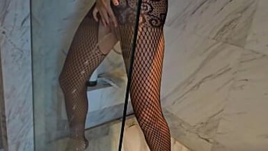 DIRTY! SEXY HAIRY MILF PISSES IN THE SHOWER AND THEN GETS FUCKED