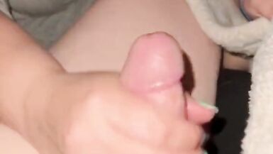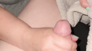 . Decided to take his cock out and jerk him off under the covers