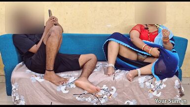 . Step mom was working at home and stepson was playing games on mobile then mummy made her sari up and started showing her pearl chute.. That relaxation is very cool and pearl. again