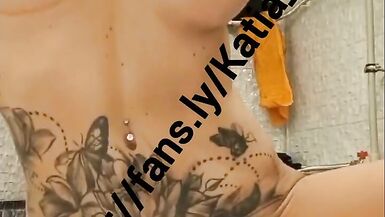 KATIA STAR BLONDE TATTOOED SKINNY FIT FAKE TITS BIMBO COME WATCH ME OIL UP MY BIG TITS RIDE A DILDO AND CUM ALL OVER IT