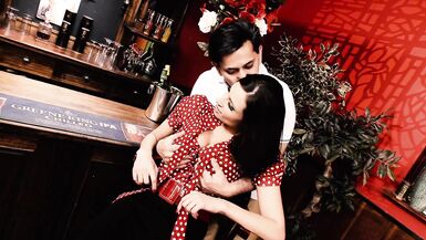 HORNY BRUNETTE MILF WITH BIG BOOBS SUCKS COCK AND GETS FUCKED IN A BAR