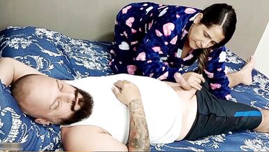 HOT LATINA TIRED OF MASTURBATING, TAKES ADVANTAGE OF A FRIEND'S ARRIVAL AND GIVES HIM A REALLY GOOD BLOWJOB SO HE CAN FUCK HER - SPANISH PORN