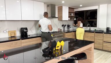 . When my wife is not home, the maid puts on one of her dresses to seduce me. My maid is a very sexy BBW with a big ass, she is a brunette with big tits, so I fuck her in the kitchen and put my BBC in her hot and horny pussy, where I put all my cum in her mouth and she swallows all my semen before my wife returns.