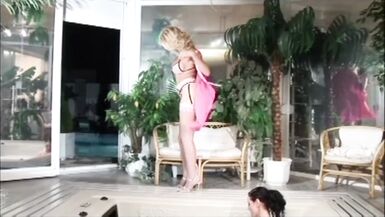 HAIRY MILF AND INEXPERIENCED BUSTY GIRL: LESBIANS IN THE HOT TUB