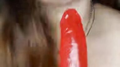. Feeling super horny Sucking my big dildo shaking my booty.