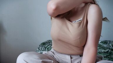 . I love it when I have moments to myself. I can then take care of ... what I want. My huge breasts are just waiting for me to touch them. I can't wait to be able to caress them again. Sometimes I have fantasies in which when I masturbate my husband covers me.