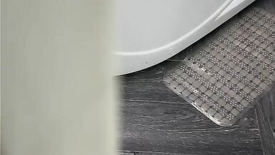 HORNY MILF WITH A HUGE ASS GETS FOOLISHLY STARED BY HER PERVERT STEPSON WHILE MASTURBATING IN THE SHOWER