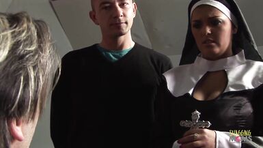 WATCH THESE BUSTY BABES GET THEIR TIGHT HOLES DRILLED BY TWO HUNG STUDS AND TAKE THEIR LOADS ON THEIR TITS