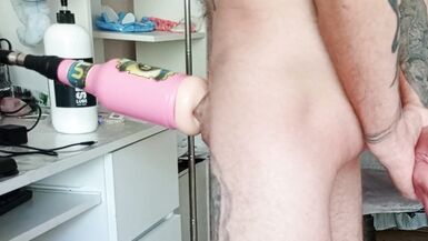 . son-in-law masturbates dick with a sex machine and cums