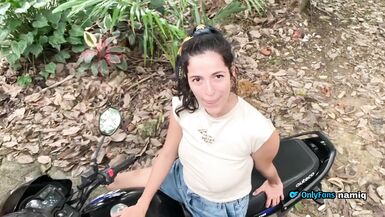 . MY NEIGHBOR WANTS TO LEARN HOW TO RIDE A MOTORCYCLE AND I END UP FUCKING HER TO TEACH HER First I charge then I show her she has a good pink and tight pussy she likes cock a lot and is an expert at riding it