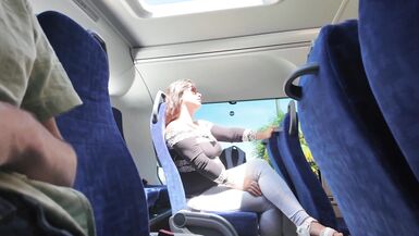 . I was on a bus. Suddenly I noticed that the neighbor took out his penis and began to jerk off. At first, I was shocked. But after a moment I became really horny for him. I sit down next to him and start jerking off. I'm sucking his dick, afraid of being seen by other passengers. Enjoy how it was risky!