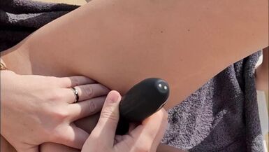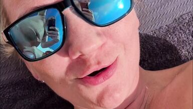 BLONDE HOT AMATEUR WIFE ON A VACATION IS TAKING SUN BATH WITH HER VIBRATOR