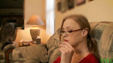 . Audrey is a 36 year old red head with a smokin hot body and my Stepmother. She calls me into the living room and I sit down beside her. She is smoking one of her long VS 120 cigarettes, reading and turning me on. I started to play with Audrey's big tits. She let me fondle them as much as I wanted and soon her hand was on my crotch. I suggested we go into a different room. Audrey did a sexy strip tease for me until she was completely nude. We both laid on the bed and Audrey fucked me good. I mean it was me on top ramming my cock into her or her on top riding me like the last fuck of her life. She must have known of my smoking fetish because Audrey lit up another cigarette and had me fuck her while she smoked. Finally, Audrey had me stand up over her. She took my cock into her mouth and began to suck and stroke me to heaven. Almost before I knew it, she had me cum into her hot wet mouth when she had gotten all my cum out she opened her mouth and showed it to me before slamming it back.