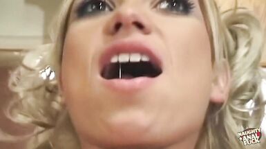 ONE LUCKY GUY GETS TO HAVE ANAL SEX WITH TWO GREEN BLONDES IN THE KITCHEN