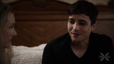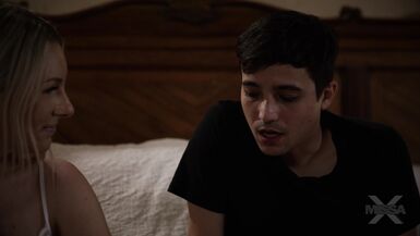 . Stepmother Bunny Madison is on the phone with a strange man and son, Ricky (Spanish), eavesdrops on the conversation. She hears him make a noise, and her heart jumps! Did he hear her? She bites her lip as she follows him to his bedroom to discuss what he heard and discovers that her stepson has heard every word! He knows his sweet stepmother is cheating on his dad.