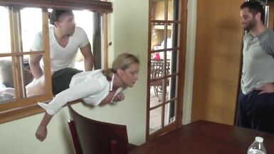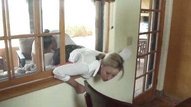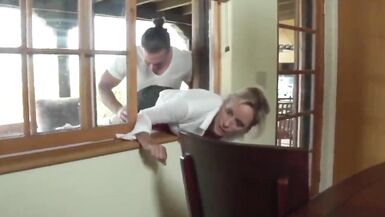 CUTE MILF STUCKED IN WINDOW AND FUCKED BY 2 MEN