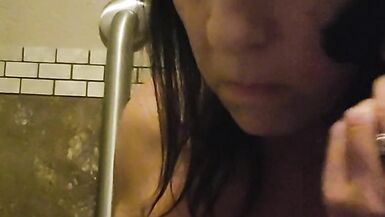 HORNY MILF PLAYS IN BAR BATHROOM