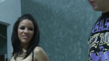 . Tattooed Latina knows how to fuck this horny dude in the living room