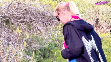 A RISKY HANDJOB IN THE BUSHES