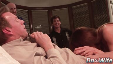 . Sexy swinger wife enjoys kissing and cock sucking before getting fucked hard in front for her husband as he enjoys it