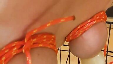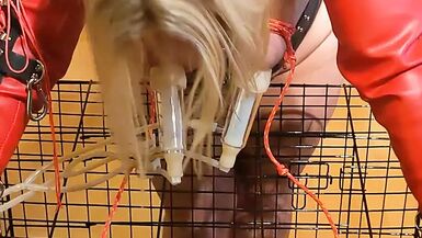. Hucow milking boobs bound Cage blond cow milked bound tots