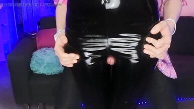 FEMBOY SLAVE FUCK WITH HER LATEX LEGS