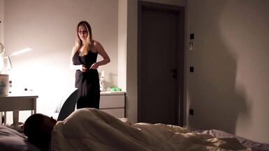 . The stepson is so afraid of thunder and lightning and he decided to ask his stepmother to spend the night in her crib, as a result, his dick got up and he decided to fuck her! The stepmother didn't mind